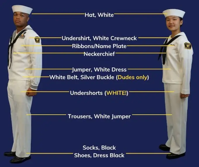 • White underwear (dress whites)